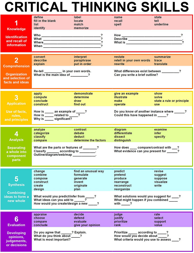 Useful poster connecting Bloom’s Taxonomy and Critical Thinking Skills
